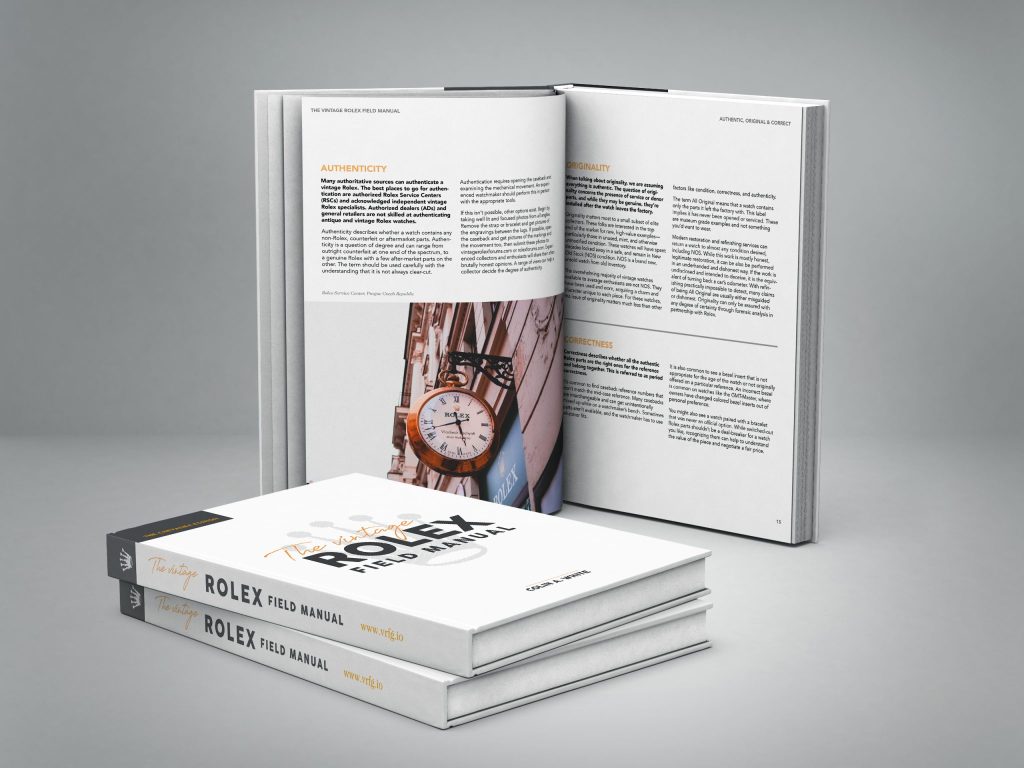 This is the second book from this author. The Vintage Rolex Field Guide is a softcover book meant to be thrown in a backpack as a quick reference guide. The current Vintage Rolex Field Manual, Chevalier Edition is a hardcover book expanding on largely the same material and is meant to be used as a desk reference.