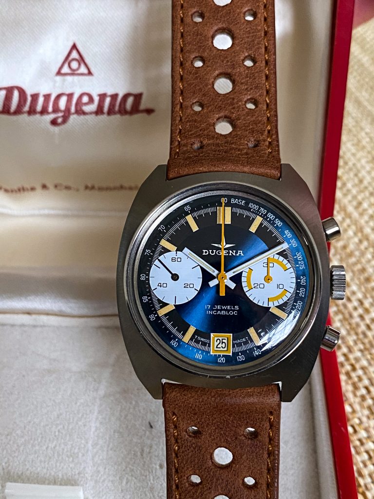 Pilots – Brown perforated racing leather strap. Comes in light and dark brown. Despite being the least expensive this was probably my favorite strap. 80 Euros.