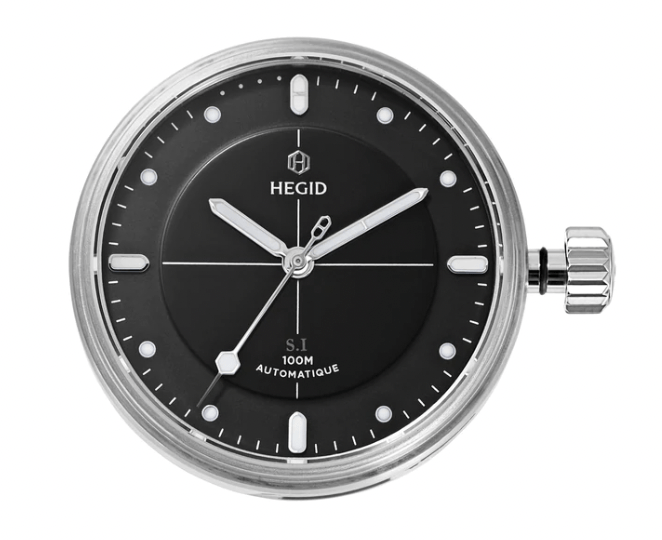 Hegid is a new independent brand that brings something new to the watch world with its user-friendly EVOL system. The movement, dial, and crystal are a modular unit that they call a “capsule.” This can be removed from the case, or “carrure” by twisting the caseback counterclockwise about a quarter inch. There are large textured grooves on the caseback which allow for easy gripping with the thumbs. Once the capsule has been removed, it can be placed into a new watch case and twisted clockwise to lock into place with a click. It is a well-engineered mechanism with quality construction. Popping out the capsule and clicking it into a new case is as easy as changing a strap using a quick release spring bar system, which also comes standard with the watch. Having both systems in place allows for on-the-go customization of strap, case, and dial.