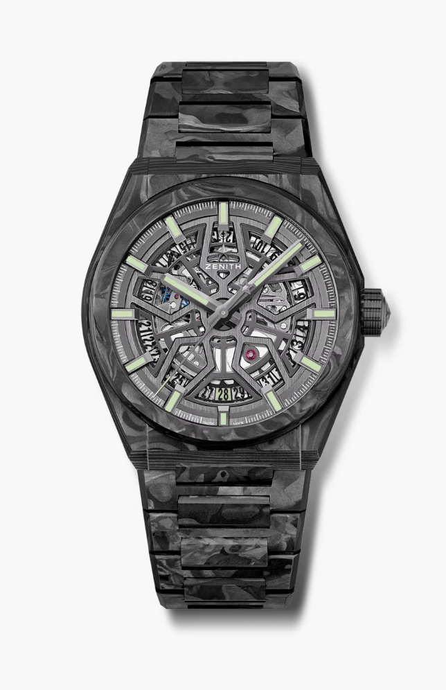 The original Zenith Defy was a robust sports watch released in the horologically significant year of 1969. Released three years before the Royal Oak, the original Defy line consisted of octagonal and tonneau shaped cases with colorful dials and integrated bracelets. The in house Zenith caliber 2562PC was an automatic winding, high beat (for the time), semi-quickset date movement. The screw in bezel, crown, and caseback and rubber housing around the movement conferred a high level of shock and water resistance. Given less attention than its 1969 birth year sibling the El Primero, the Zenith Defy line nevertheless was an innovative and assertively styled set of watches that were also ahead of their time. The line, like so many others, disappeared during the quartz crisis.