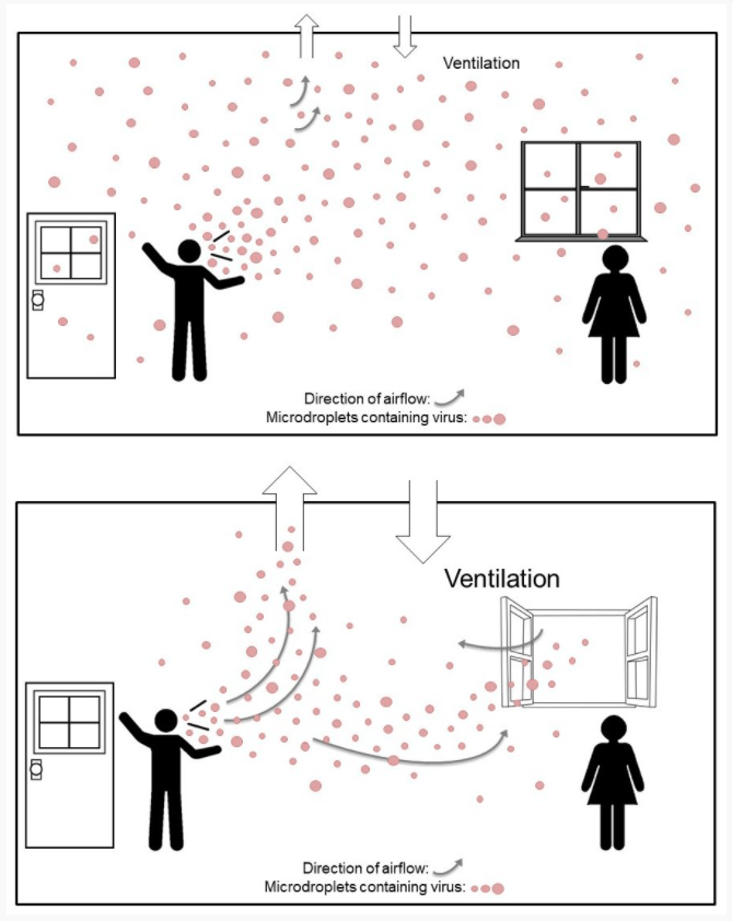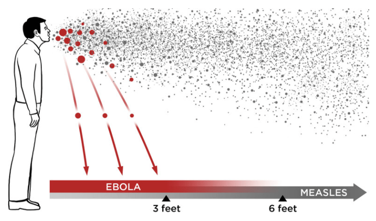 Airborne spread has several important implications which may have led to some reluctance to embrace it. Firstly, it means that patients need to be isolated in “negative pressure” rooms where the room pressure is less than the pressure outside so that air is constantly sucked into the room. These rooms are expensive and few of them exist in a hospital. This problem was quickly dealt with by designating specific floors for COVID-19 patients only. Second, health care workers need N95 masks rather than regular surgical masks, which were in short supply. Third, airborne spread is rather rapid, hard to contain, and much more alarming than droplet spread. The original New England Journal of Medicine article indicated that the virus remained in the air for up to 3 hours but this finding was greeted by some skepticism. After some initial hesitation that it could be airborne at all, the guidance changed to that it may become airborne during “aersolizing procedures” such as inserting a breathing tube. More study has shown that the virus is likely to be airborne to some degree. Basically if someone is sick the virus may get airborne and spread like a cloud from a smoke bomb. To escape the smoke it is better to be further away, be near ventilation like a fan, be outdoors, or muffle the smoke bomb in the first place by throwing a bucket over it which is the equivalent of the sick person wearing a mask.