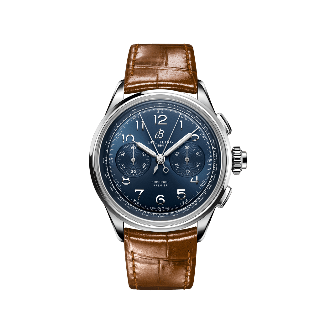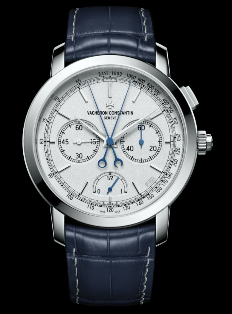 This is possible due to the modular nature of the B01 which allows for stacking parts but makes it a thicker mechanism, 30 mm wide by 8.6 mm thick. The split-seconds mechanism is hidden due to the modularity and there are simplifications in the isolating system for when one hand is paused and the other runs. The overall intention recalls the IWC Doppelchronograph which used a Valjoux 7750 base to run a simplified split-seconds mechanism at an affordable price. It is worth noting that an earlier version was released in 2017 in the Navitimer line but had an automatic movement with a rotor that partially obstructed the view of the movement with the caliber B03. The Premier Duograph in steel is priced at $10,250 which equates to 3.5% of the price of the Vacheron.