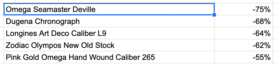 The asking price for watches is also often not the selling price. How much are you willing to negotiate? In other words, unless you are a dealer with access to dealer networks, buying a watch has significant transaction costs related to the need for the seller to make money which can be as high as 25-50%. Imagine that you are paying $10,000 for shares of an index fund but there is a $3,500 fee so that the shares you receive are only worth $6,500. This is essentially what happens when you buy a watch. In order for you just to make your money back, never mind make a profit, your watch needs to increase in value by whatever premium you paid before you make even a penny.