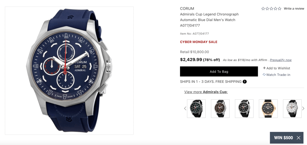 First of all, picking a watch is not a very straightforward task. Presumably you want to buy the watch to enjoy, not purely based on the expectation of monetary gain. This means that the watch you want may not be the best investment piece. Furthermore, how do you know which watch will appreciate in value? For every Paul Newman Daytona, there is a Breitling Avenger, or a Corum Bubble, or any of a host of other watches which have gone out of style and are worth very little today compared to their sale price. As a stock prospectus will tell you, “past performance is no indicator of future results.” If you can pick the right watch every time, then you can probably make a good living as a fortune teller. Essentially we are dealing with a highly speculative market with rare big rewards but also significant potential for big losses.