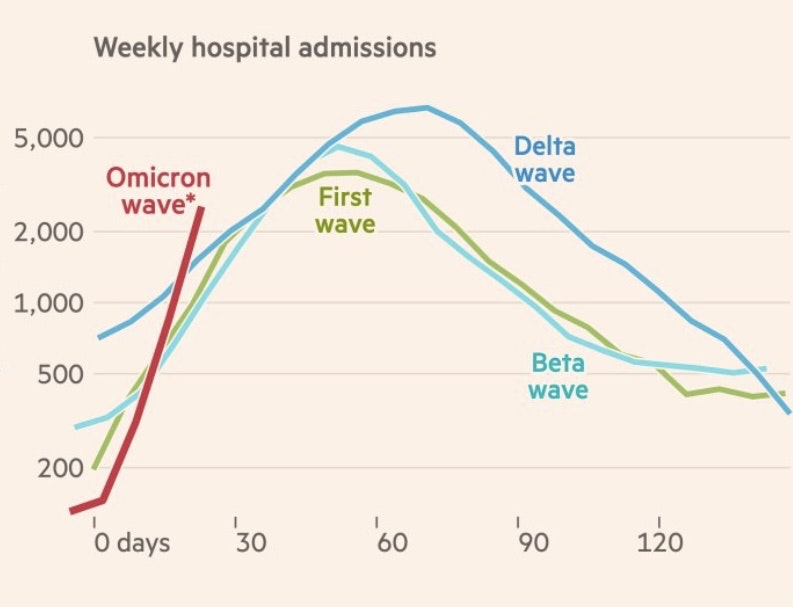 Keep in mind also that Omicron, being more contagious than Delta and more likely to infect hosts with some prior immunity, is likely to stress and could possibly overwhelm health care systems. Even if the death rate is half that of Delta (unlikely), if it infects twice as many people, just as many will die. If the health care system becomes overwhelmed, that means that patients who are having other medical emergencies such as a car accident, heart attack, or stroke will not be able to get care in a timely fashion. Surgeries for serious conditions such as cancer may be postponed due to lack of available beds on the hospital floors or intensive care units.